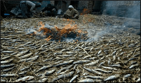 Farrigad or smoke-cured fish – These fishes are placed on grass before smoking them, then the grass is torched to smoke fishes and smoke keeps billowing till fishes get roasted. The fishes are not cleaned or gutted before smoking it.